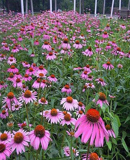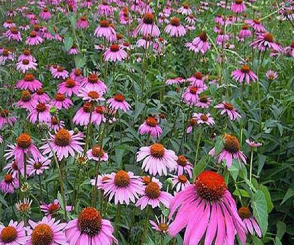 松果菊(學(xué)名:Echinacea purpurea (Linn.) Moench)是菊科松果菊屬植物,多年生草本植物。高50-150厘米,全株有粗毛,莖直立;葉緣具鋸齒。基生葉卯形或三角形,莖生葉卯狀披針形,葉柄基部略抱莖。頭狀花序,單生或多數(shù)聚生于技頂,花大,直徑可達10厘米:花的中間部位凸起,呈球形,球上為管狀花,橙黃色;種子淺褐色,外皮硬。花期夏秋。喜歡光照足、溫暖的氣候條件,適生溫度15-28℃,耐寒,耐干旱,對土壤的要求不嚴(yán),在深厚、肥沃、富含腐殖質(zhì)的土壤中生長。松松果菊花朵大型、花色艷麗、外形美觀,可以作為花境、花壇、坡地的材料,也可作盆栽擺放于庭院、公園和街道綠化等處。松果菊還可作切花的材料。
