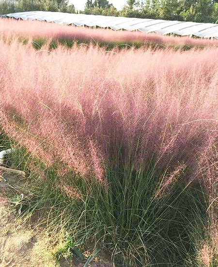 黛亂子草(學名:Muhlenbergia capillaris (Lam.) Trin.):多年生暖季型草本,株高可達30-90厘米,寬可達60-90厘米。頂端呈拱形,綠色葉片纖細。頂生云霧狀粉色花絮,花期 9-11 月,成片種植可呈現出粉色云霧海洋的壯觀景色,景觀可由9月份一直持續至11月中旬。 景觀用途:適合大片種植。亦可孤植、盆栽或作為背景、鑲邊材料。