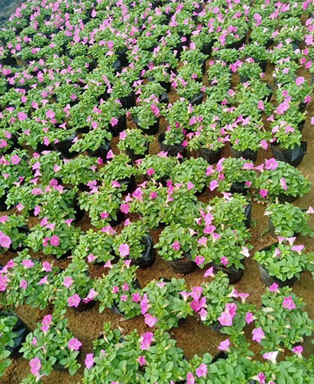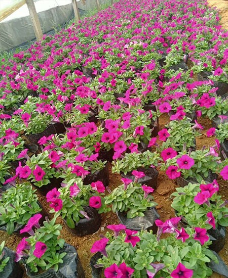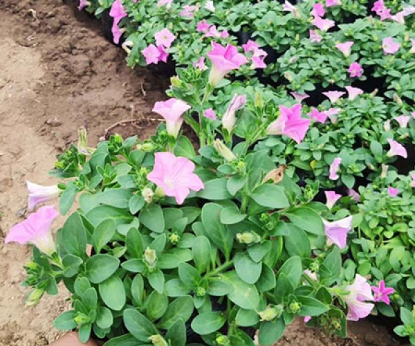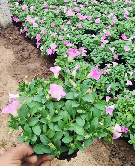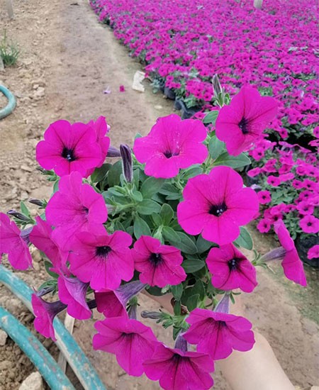 茄科,碧冬茄屬。正式名碧冬茄。多年生草本,常作一二年生栽培,高20—45厘米;莖匍地生長(zhǎng),被有粘質(zhì)柔毛;葉質(zhì)柔軟,卵形,全緣,互生,上部葉對(duì)生;花單生,呈漏斗狀,重瓣花球形,花白、紫或紅色,并鑲有它色邊,非常美麗,花期4月至降霜;蒴果;種子細(xì)小。分布于南美洲,如今各國(guó)廣為流行。 生長(zhǎng)習(xí)性 喜溫暖和陽(yáng)光足的環(huán)境。不耐霜凍,怕雨澇。它生長(zhǎng)適溫為13~18℃,冬季溫度在4~10℃,如低于4℃,植株生長(zhǎng)停止。夏季能耐35℃以上的高溫。盆土若長(zhǎng)期積水,則爛根死亡,所以盆栽矮牽牛宜用疏松肥沃和排水良好的砂壤土。 屬長(zhǎng)日照植物,生長(zhǎng)期要求陽(yáng)光充足,在正常的光照條件下,從播種至開(kāi)花約需100天左右。冬季大棚內(nèi)栽培矮牽牛時(shí),在低溫短日照條件下,莖葉生長(zhǎng)很茂盛,但著花很難,當(dāng)春季進(jìn)入長(zhǎng)日照下,很快就從莖葉頂端分化花蕾。