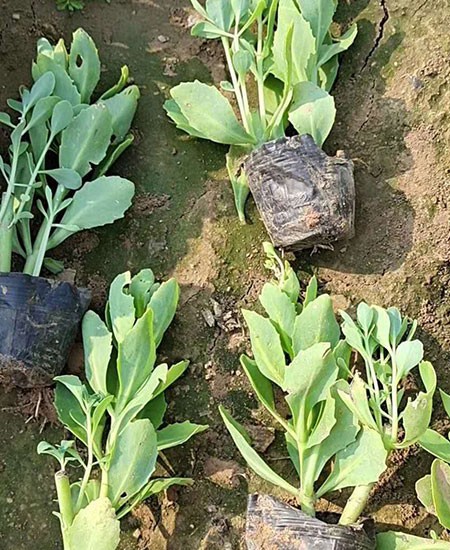 多年生肉質草本植物,株高30~50cm。地下莖肥厚,地上莖簇生,粗壯而直立,全株略被白粉,呈灰綠色。葉輪生或對生,倒卵形,肉質,具波狀齒。傘房花序密集如平頭狀,花序徑10~13cm,花淡粉紅色,常見栽培的尚有白色、紫紅色、玫紅色品種。 花期,7~10月。