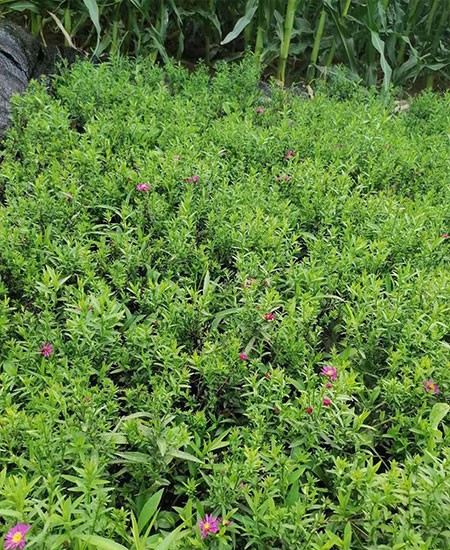 多年生宿根草本,株高50-100厘米,全株被粗毛,上部呈傘房狀分枝。葉狹披針形至線狀披針形,近全緣,基部稍報莖,無粘性茸毛。 頭狀花序傘房狀著生,花較小,舌狀花1-3輪,淡藍(lán)紫色或白色,總苞片線形,端急尖,微向外伸展,花期8-10月。